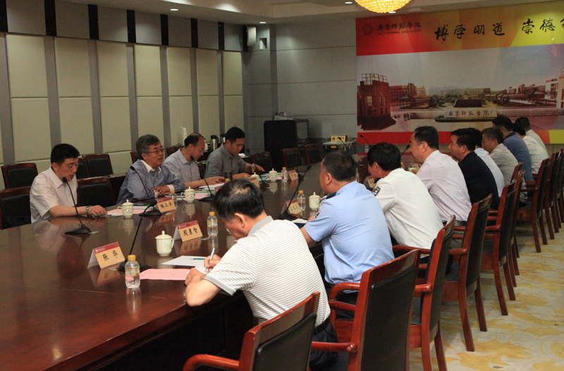 汇报会在图书馆四楼会议室召开,副校长刘德增同志、保卫处、学生处、后勤管理处、国有资产管理处、图书馆等有关职能部门负责人参加了汇报会。汇报会上,检查组组长烟台大学副校长邓昌亮就省委高校工委关于开展“校园安全隐患大排查快整治严执法集中交叉检查行动”的通知精神、检查内容、检查方法进行了说明。刘德增副校长代表学校党委、行政对省委高校工委检查组来我校检查指导工作表示热烈欢迎,然后就学校安全工作开展情况作了详细汇报。