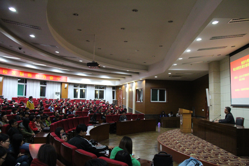 2015年11月2日,山东大学管理学院副院长、博士生导师陈志军教授应邀为经济与管理学院学生带来了以“经济管理类硕士研究生招生现状与应试技巧”为题的学术报告会。本次报告会于下午六点半在图书馆学术报告厅正式开始。报告会由万克德院长主持,党总支蔡平胜书记、副院长蔡平和本专科学生到场参加了此次报告。