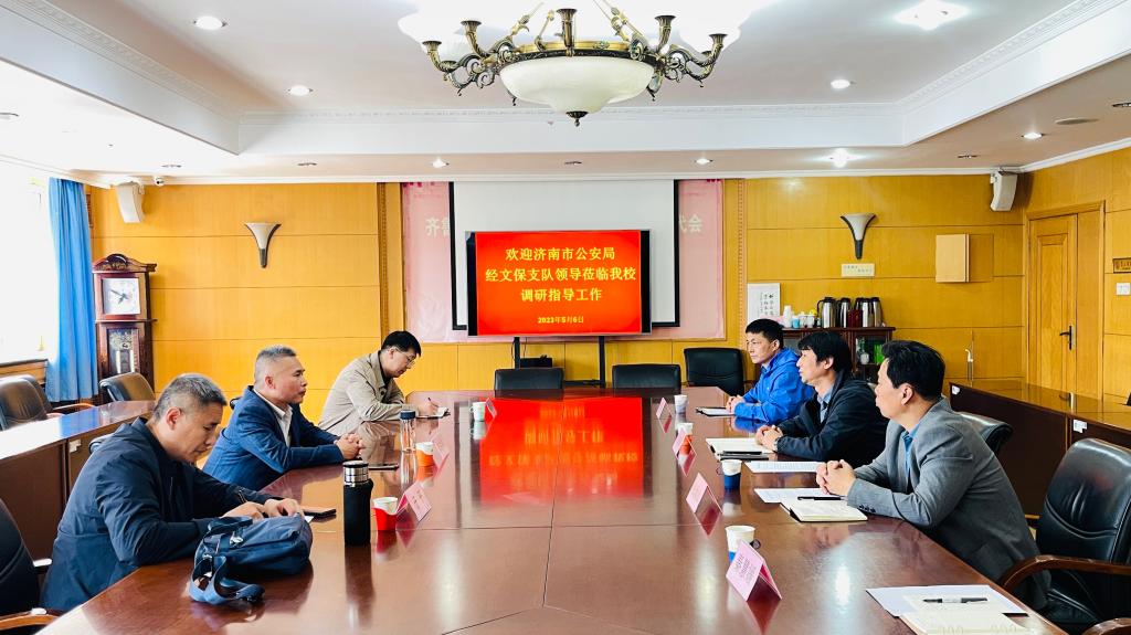 5月6日上午,济南市公安局经文保支队支队长朱容海一行到齐鲁师范学院历下校区调研指导工作,学校党委委员、统战部部长宋新刚接待来访并陪同调研。济南市公安局经文保支队三大队大队长于平、秘书科科长吴百洋,我校历下校区管理办公室主任张汝山以及办公室相关工作人员参加调研座谈会。调研工作主要围绕校区警务室建设及校园安全管理工作展开。