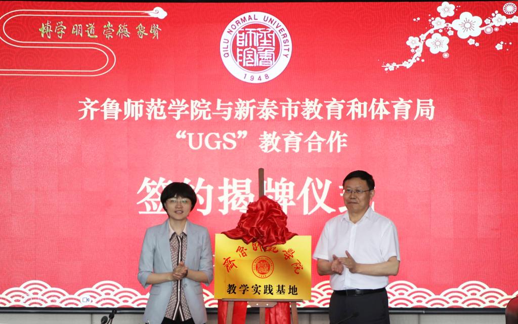 座谈结束后,张克玉、崔玉军作为双方代表签署了“UGS”教育合作协议。林松柏和王翠共同为在新泰市设立的齐鲁师范学院教学实践基地揭牌。