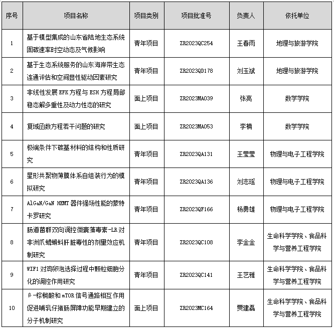 附:齐鲁师范学院2023年度山东省自然科学基金立项项目一览表