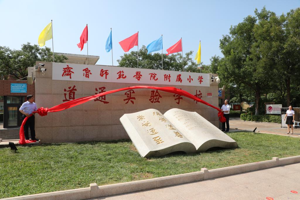 会后,举行附属学校揭牌仪式,在章丘中学北门、道通实验学校门口,丁兆方、张兆明共同为齐鲁师范学院附属中学、齐鲁师范学院附属小学揭牌。