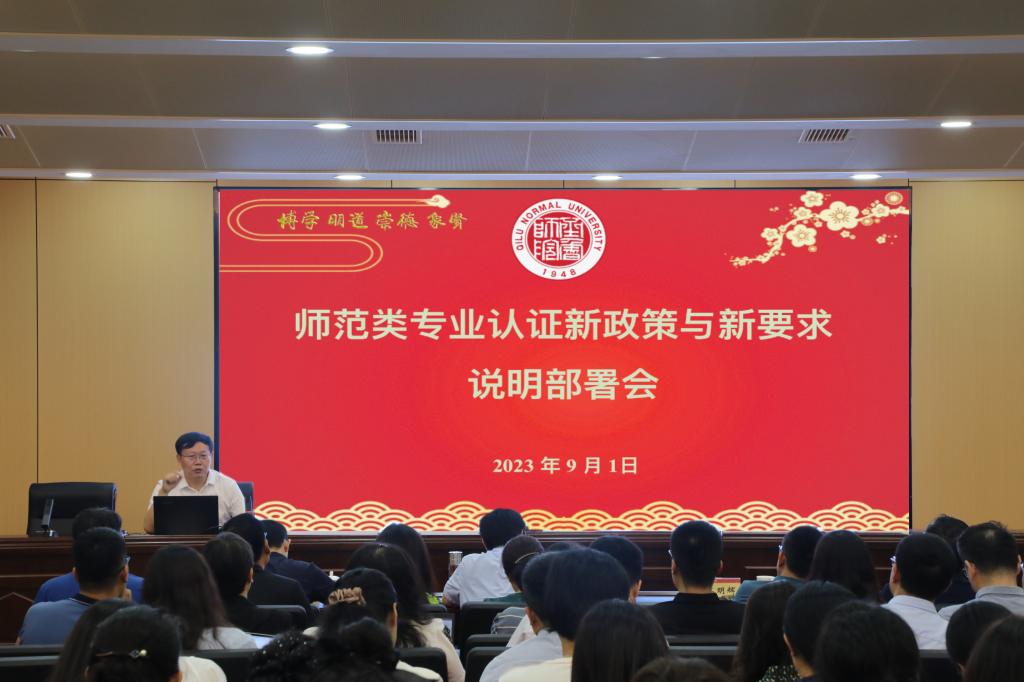 为深入学习贯彻习近平新时代中国特色社会主义思想和党的二十大精神,切实推进师范类专业认证工作高质量发展,9月1日上午,齐鲁师范学院在章丘校区第二学术报告厅召开师范类专业认证新政策与新要求说明部署会。党委书记林松柏出席会议并作专题报告。党委副书记、校长郑秀文,党委委员、纪委书记、监察专员高明辉,党委委员、副校长孙正参加会议。会议由孙正主持。