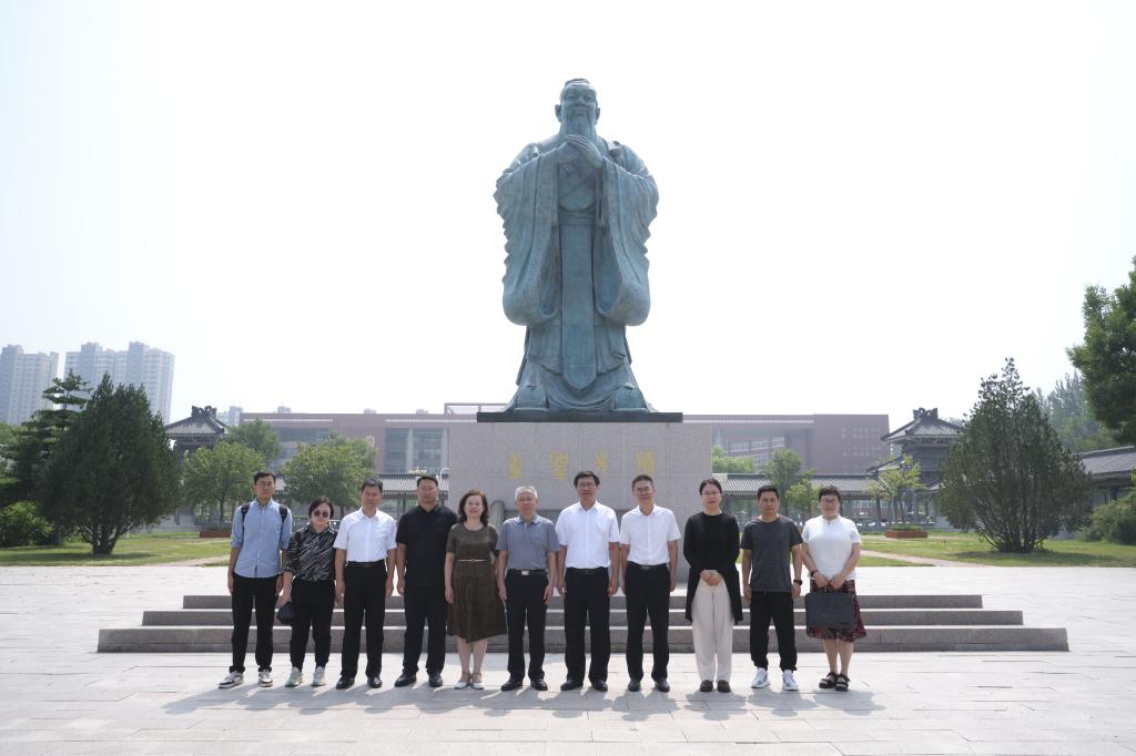 丁邦文一行实地参观了齐鲁文化长廊。长廊以汉代建筑风格为主基调,古朴凝重、简洁整齐,丰富多彩地呈现了各个阶段齐鲁文化的精神风貌。