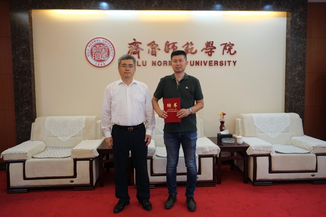 学校为须健教授举行齐鲁师范学院特聘教授聘任仪式,副校长张兆明为其颁发特聘教授聘任证书。