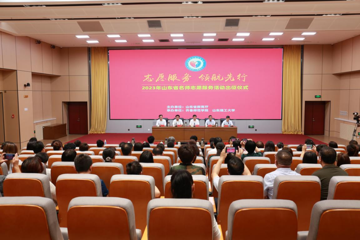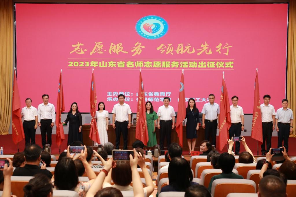 为深入学习贯彻习近平总书记关于教师队伍建设的重要指示精神,进一步擦亮山东教师志愿服务的品牌,发挥名师队伍示范引领作用,9月9日上午,由山东省教育厅主办,齐鲁师范学院和山东理工大学共同承办的“志愿服务 领航先行”2023年山东省名师志愿服务活动出征仪式隆重举行。省委教育工委委员,省教育厅党组成员、副厅长张志刚出席仪式并讲话,省教育厅二级巡视员李文生主持仪式。齐鲁师范学院党委副书记、校长郑秀文出席仪式,并向教师志愿者团队授旗。