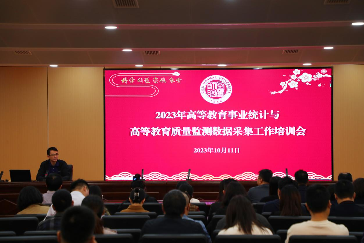 10月11日上午,齐鲁师范学院在章丘校区第二学术报告厅召开2023年高等教育事业统计与高等教育质量监测数据采集工作培训会。党委委员、副校长孙正主持会议并讲话。