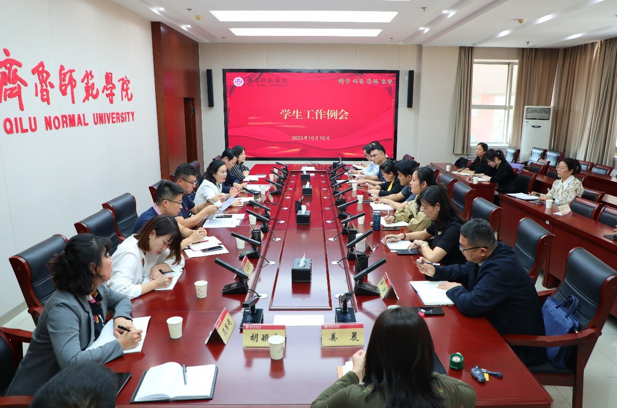 10月10日下午,齐鲁师范学院在章丘校区第二会议室召开学生工作例会,会议由学校党委副书记赵敏主持,学生工作部(处)、团委相关工作人员,各学院党委副书记参加会议。