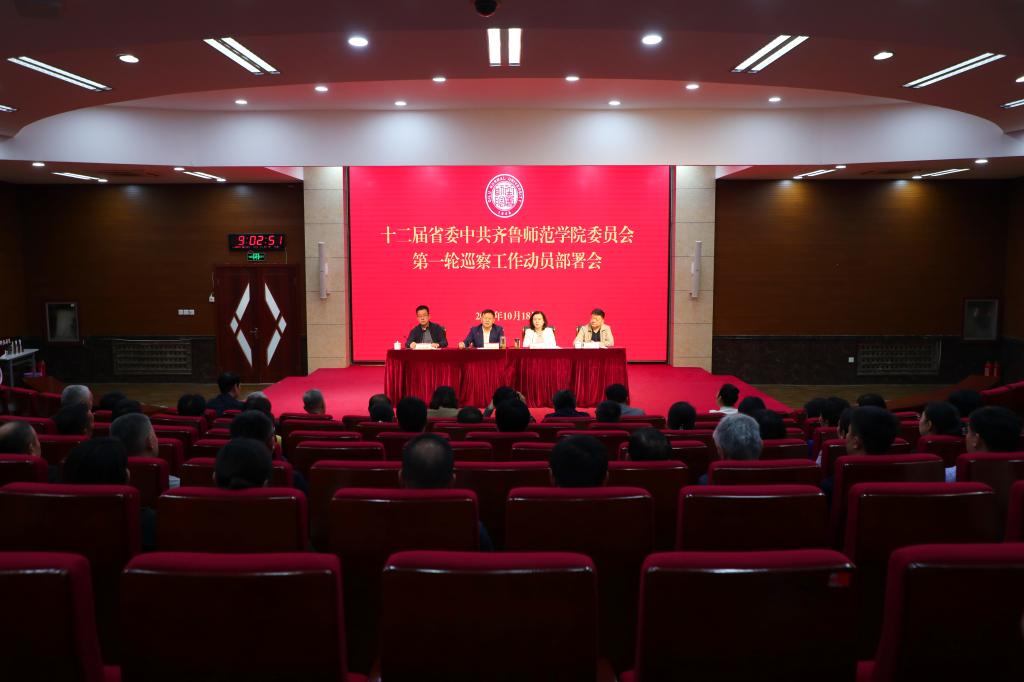 10月18日,齐鲁师范学院在章丘校区第一学术报告厅召开十二届省委学校党委第一轮巡察工作动员部署会议。党委书记、巡察工作领导小组组长林松柏出席会议并作动员讲话,党委副书记、巡察工作领导小组副组长赵敏,党委委员、纪委书记、监察专员、巡察工作领导小组副组长高明辉出席会议,会议由赵敏主持。学校巡察工作领导小组成员,巡察办和巡察组成员,全体中层干部参加会议。