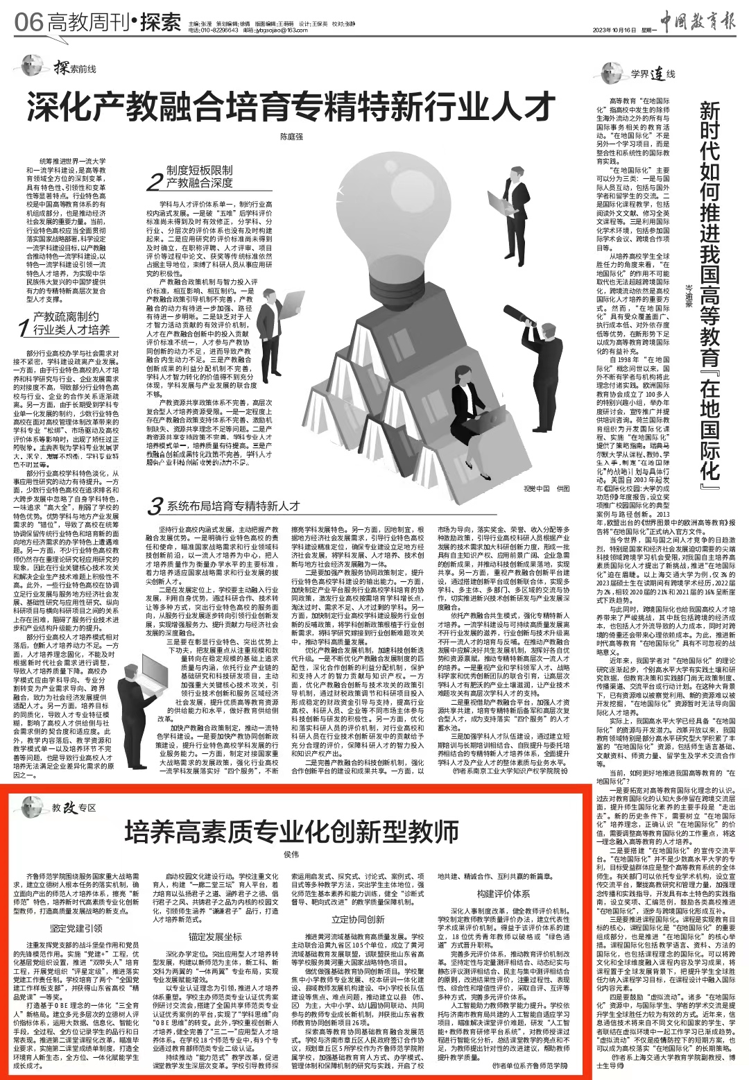 10月16日,《中国教育报》在“高教周刊·探索”(第06版)版块刊发《培养高素质专业化创新型教师》一文,对学校培养高素质专业化创新型教师典型经验进行了专题报道。