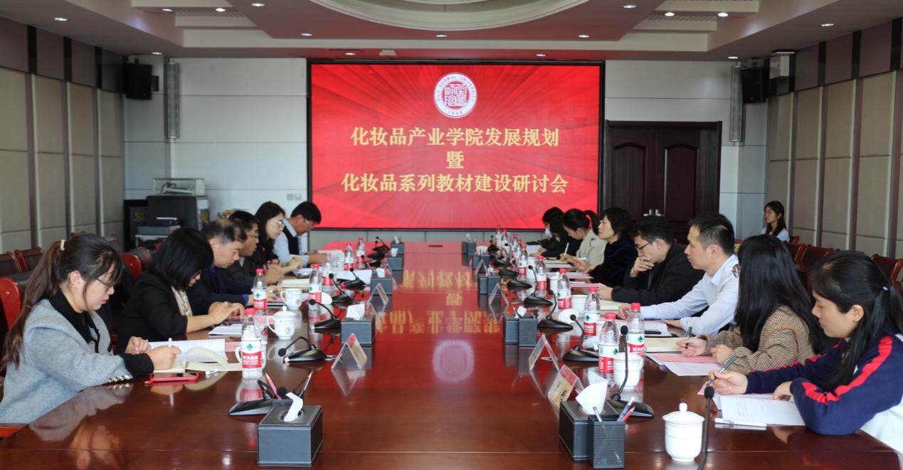 化学与化工学院院长曹晓荣围绕学院学科优势与特色、化妆品专业现有基础、产业学院的发展规划、化妆品教材建设规划等情况进行了汇报。