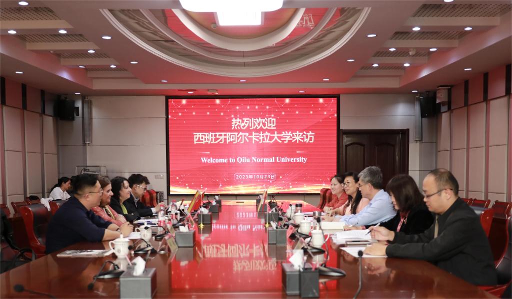 10月23日下午,西班牙阿尔卡拉大学国际语言学院院长、经济学院负责人Maria、国际语言学院教务部主任Sonia一行到校访问,齐鲁师范学院副校长张兆明出席座谈交流,地理与旅游学院、经济与管理学院负责人陪同参加,座谈会由国际交流与合作处处长何艳主持。