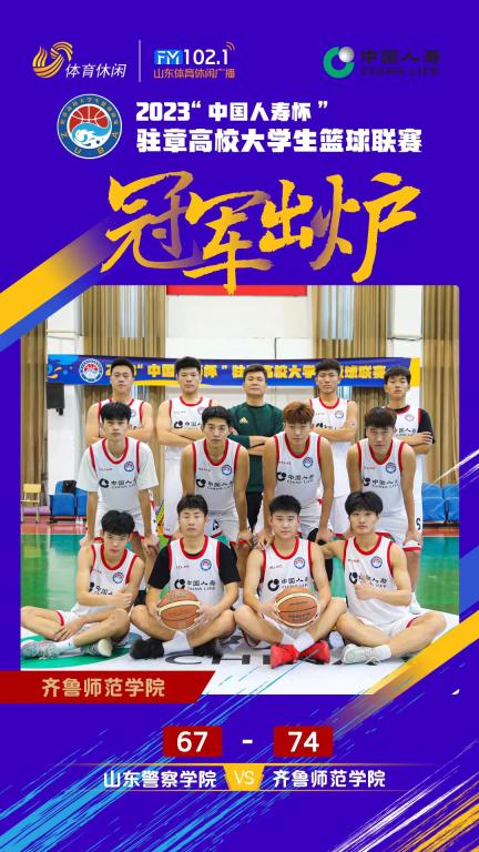 11月17日2023“中国人寿杯”驻章高校大学生篮球联赛决赛在章丘区体育馆举行。齐鲁师范学院与山东警察学院进入决赛,历经四节鏖战,齐鲁师范学院以74比67战胜山东警察学院,获得本次赛事的冠军。学校党委副书记赵敏亲临比赛现场,给队员加油助威,并作为颁奖嘉宾为球队颁奖。