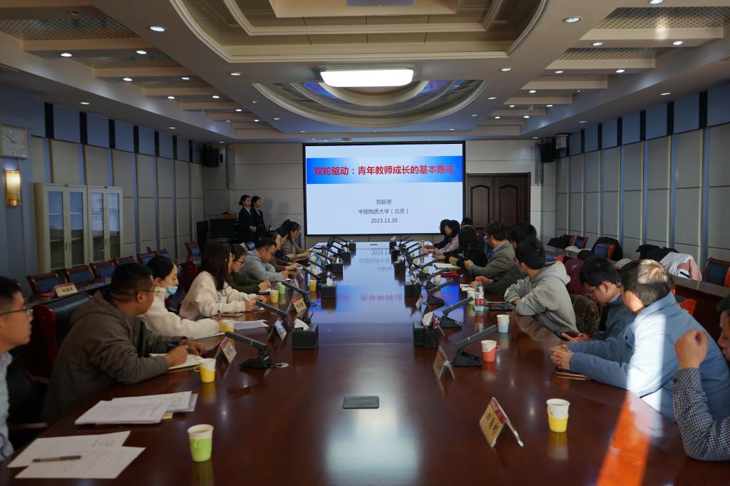 随后,举行了地理与旅游学院青年教师成长研讨会,郑新奇作了题为《双轮驱动:青年教师成长的基本路径》的报告。