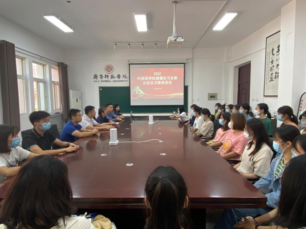 9月19日上午,外国语学院在学院会议室举行了援疆实习支教出征仪式暨座谈会。本次会议由外国语学院副院长李百温主持。外国语学院党政领导班子、教师代表以及全体援疆支教同学出席会议。