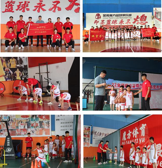 在即墨区体育中心和当地企业的大力支持下,7月15日,师生一行共计20余人,抵达青岛市即墨区金诺魔方篮球馆,指导当地青少年儿童进行科学体育锻炼,宣讲专业体育知识。