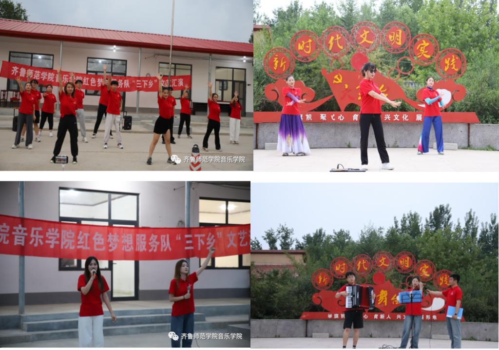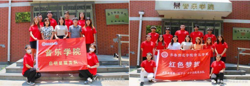 在今年的社会实践组织过程中,音乐学院积极推动“思政+专业”实践育人工作模式,力争将思想政治教育融入专业课程体系、实践活动体系和自我教育体系,在社会实践中形成育人合力。学院组建“红色梦想”服务队、“启明星”2支服务队分赴商河县、济阳区进行暑期社会实践活动。
