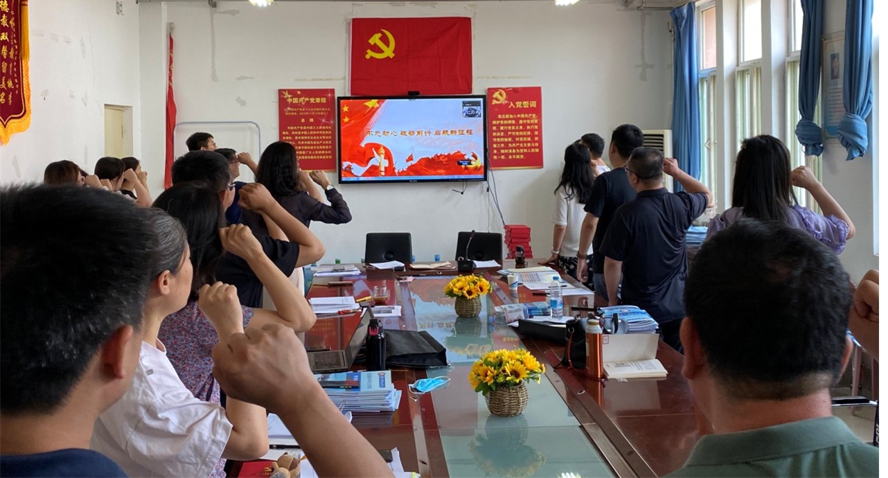 重温入党誓词,牢记入党初心,砥砺奋进再前行。活动中,信息科学与工程学院全体教师党员一起面向党旗,重温入党誓词,重忆入党初心,重新接受党性洗礼。铿锵有力的入党誓词彰显了每一名党员对党的忠诚。