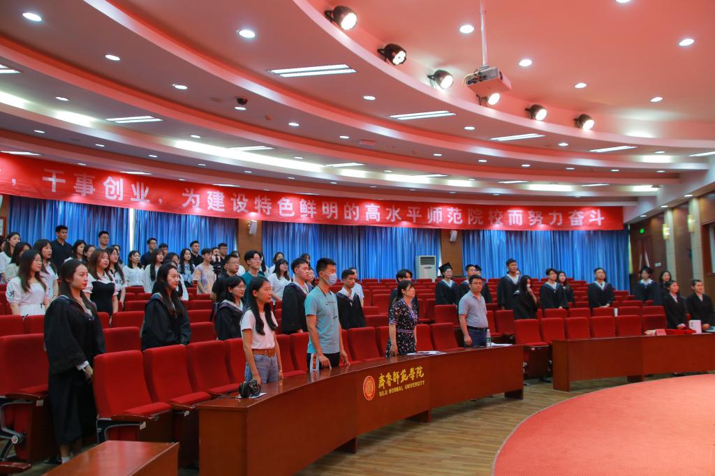 数学学院团总支书记张祥艳宣读省级优秀毕业生名单和校级优秀毕业生名单,数学学院学位评定分委员会成员为获奖学生颁奖。