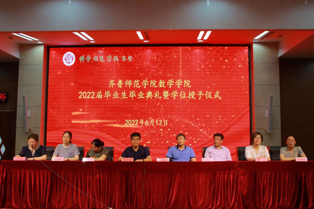 6月12日下午,数学学院2022届毕业生毕业典礼暨学位授予仪式在章丘校区图书馆学术报告厅举行。数学学院学位评定分委员会成员、数学学院党政人员,全体教师、全体毕业生通过线上线下相结合的方式参加了此次典礼。典礼由数学学院党委副书记初益辰主持。