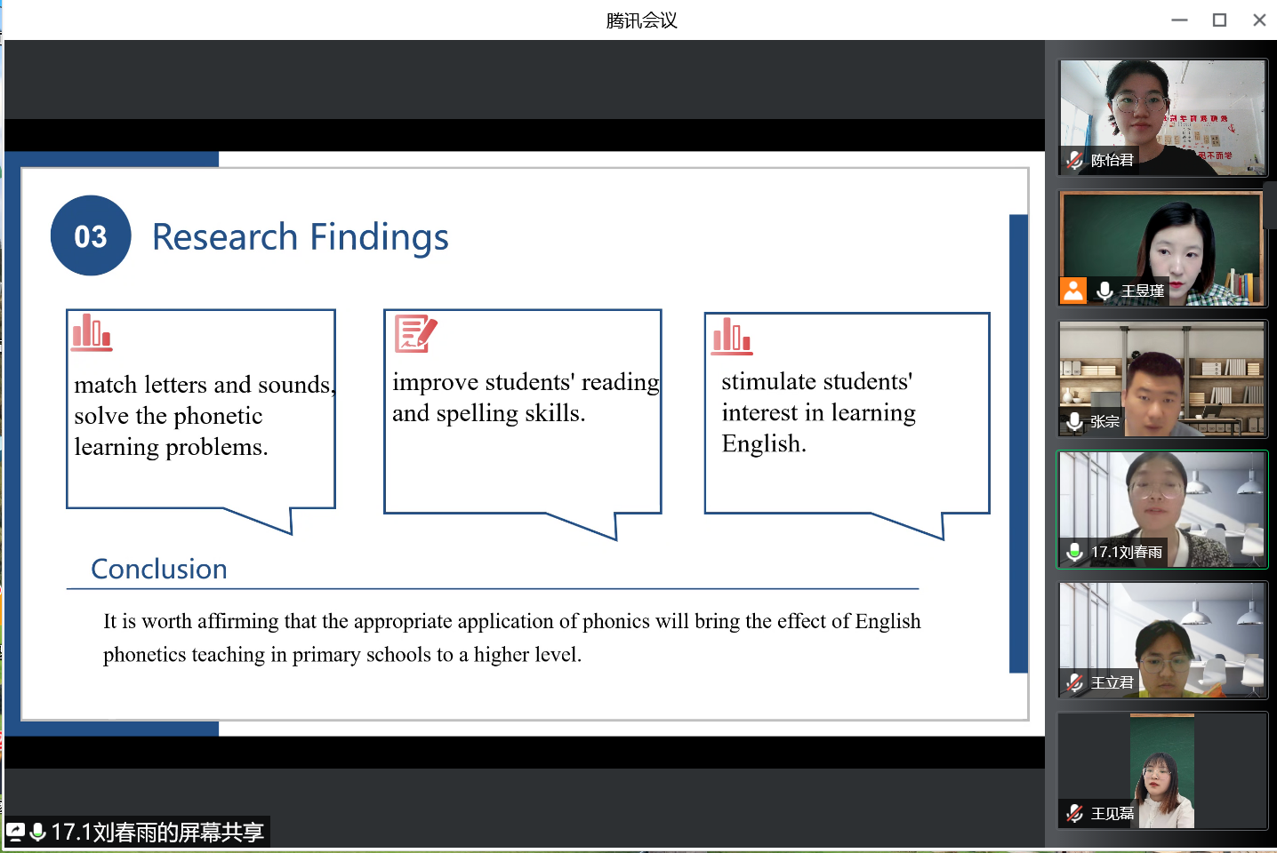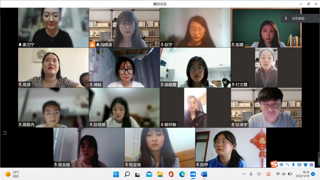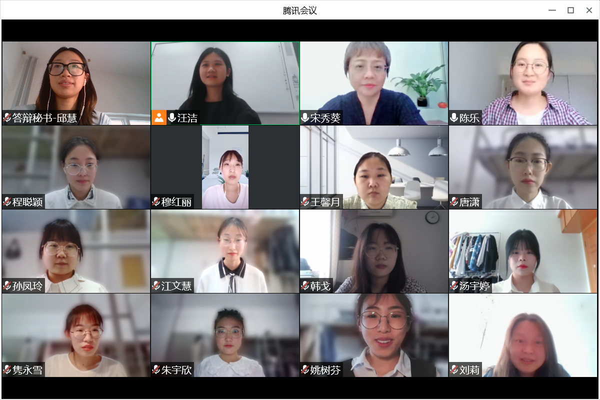 5月20日下午,外国语学院通过腾讯会议开展了2022届师范类英语专业和翻译专业本科毕业论文答辩。2022届英语专业、翻译专业本科毕业生共分为18个小组进行线上答辩,外国语学院院长宋秀葵、副院长李百温、英语教研室主任林德奖、翻译教研室主任冯晓凌及指导老师们出席了本次答辩。