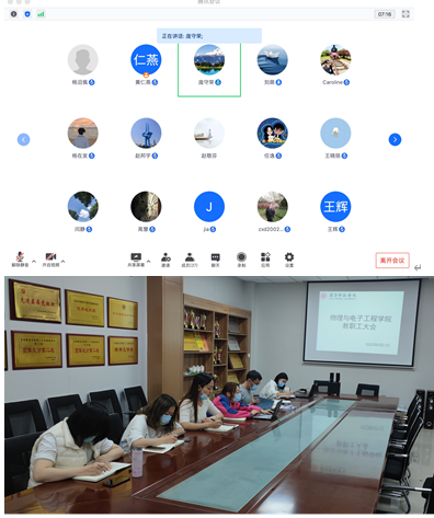 为进一步落实学校新冠肺炎疫情防控工作的要求,部署安排学生工作,5月1日晚,物理与电子工程学院分别召开教职工会议和全体学生大会,会议分别由院长张洁和党委副书记臧葳主持,全体教职工和学生参会。