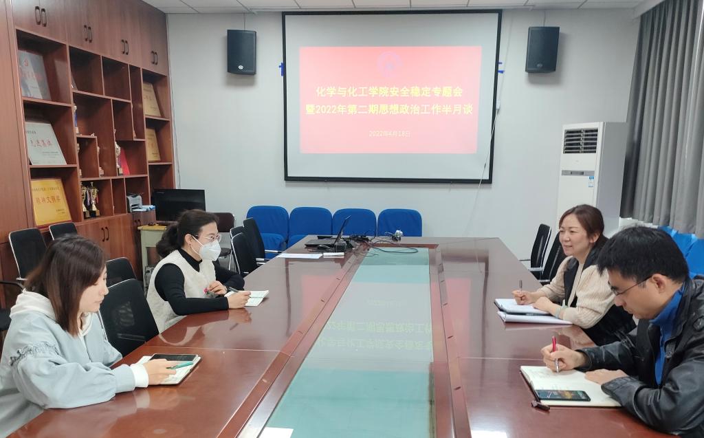 为了进一步加强疫情防控期间学生教育管理工作,4月18日上午,化学与化工学院召开安全稳定专题会暨2022年第二期“党建与思想政治工作”半月谈。化学与化工学院党委书记郭百灵、党委副书记巩磊、辅导员参加,会议由郭百灵主持。
