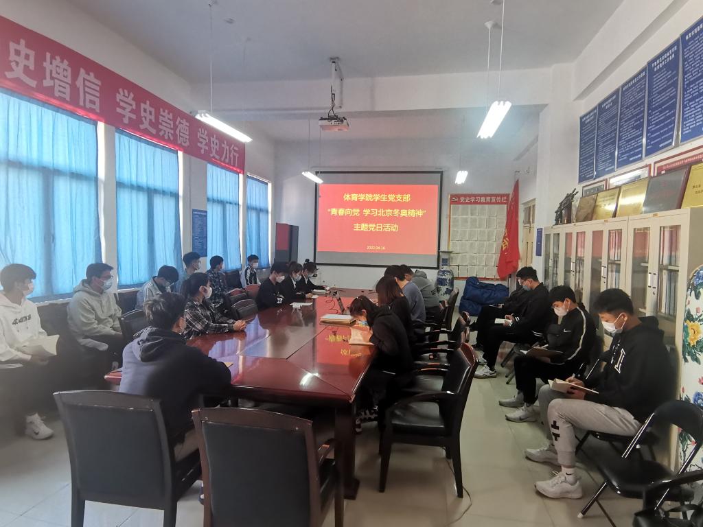 4月16日,体育学院学生党支部组织开展“青春向党 学习北京冬奥精神”主题党日活动。活动由支部书记闫莉莉主持,采取线上线下结合方式进行,体育学院党委书记胡义忠应邀列席相关会议。