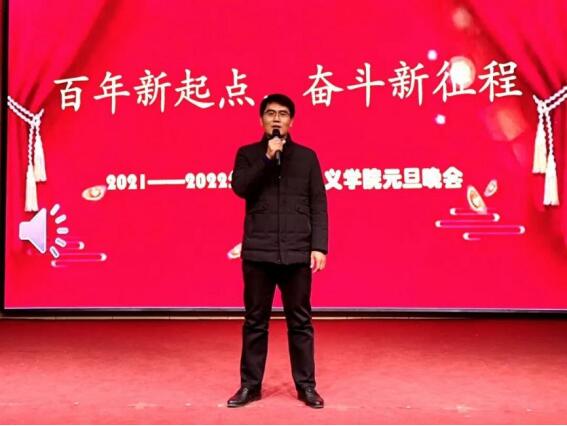 为回首2021年的佳绩,迎接新一年的到来,帮助马克思主义学院学生在实现中华民族伟大复兴的进程中树立正确理想信念,2021年12月30日,马克思主义学院于齐鲁师范学院图书馆报告厅举行了以“百年新起点,开启新征程”为主题的元旦晚会。参加本次晚会的有马克思主义学院党总支书记贾龙老师,院长赵立峰老师,马克思主义学院刘振光教授,办公室主任刘金玲老师,2021级思想政治教育本科一班班主任张纪昌老师,团总支副书记王雅文老师,青年教师代表孙燕丽老师、娄衍群老师、刘英老师、彭珍珍老师、孙良运老师以及马克思主义学院2018级、2020级、2021级思想政治教育本科班全体学生。