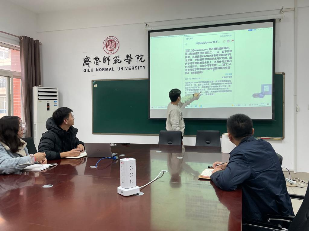 为深入学习贯彻落实习近平总书记关于网络强国重要思想,提升网络舆情应急处置能力,强化网络意识形态工作责任制落地落实,12月28日,外国语学院举行了网络舆情突发事件模拟演练。学院党总支书记、团总支负责人及辅导员参加了演练。演练活动由团总支书记牛荦主持。