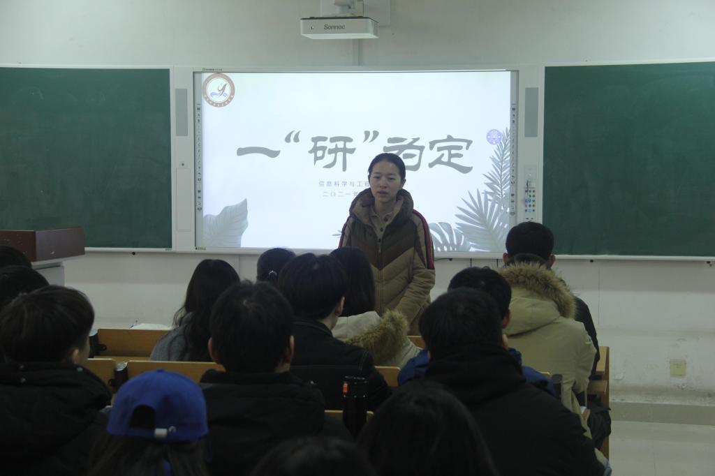 厚积薄发,一战成“硕”。为进一步鼓舞考研学生的士气,舒缓备考压力,助力考研学生科学备考、从容应考,12月16日,信息科学与工程学院于二教B108举行了2022届考研冲刺动员大会。2018级辅导员马燕为全体考研学子加油打气,并送上温暖的祝福。