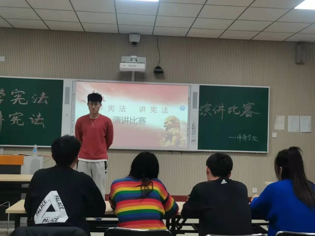 为增强同学法律意识,丰富同学业余生活,活跃校园文化氛围,提高同学们的语言表达能力,营造良好的普法氛围,体育学院于12月12日下午6:50在二教A311举行“学宪法,讲宪法”为主题的演讲比赛。
