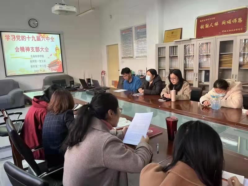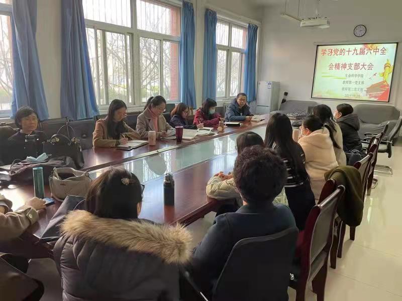 生命科学学院两个教师党支部会把学习贯彻党的十九届六中全会精神,作为当前和今后一个时期的学习重点,进一步增强贯彻落实的政治自觉、思想自觉、行动自觉,以史为鉴、开创未来,埋头苦干、勇毅前行。