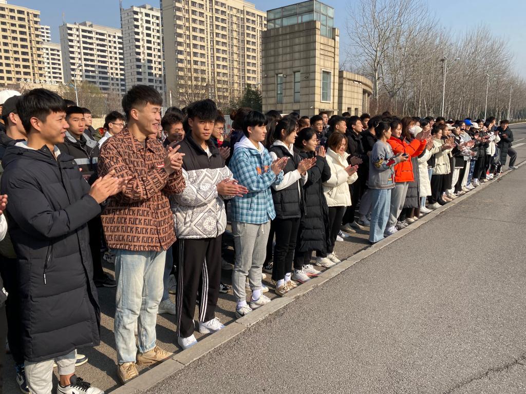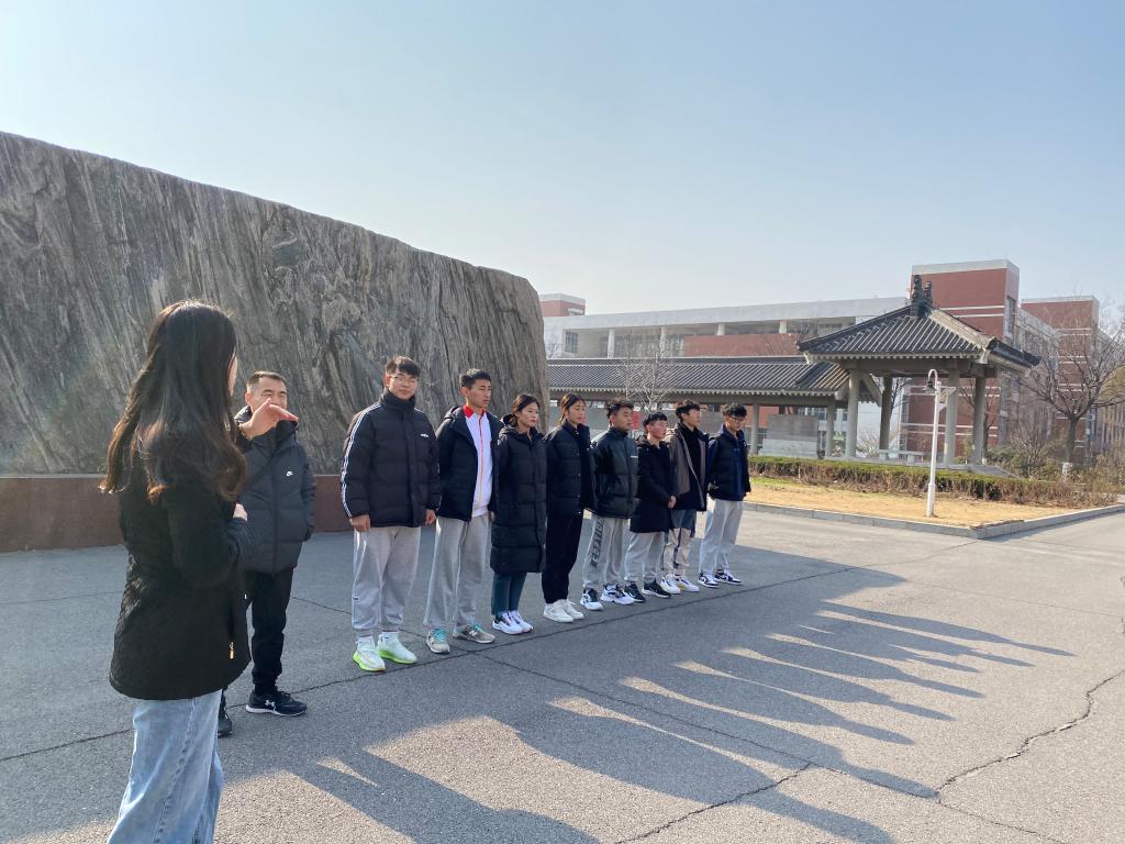为鼓舞士气,凝聚力量,11月27日中午,体育学院体育教育专业学生参加2021年山东省高校体育教育专业学生基本功大赛出征动员会在学校北门举行。体育学院学院党总支副书记李萧,辅导员李鹏飞,指导教师贾磊和参赛队员参加此次动员会。体育教育专业全体学生早早地来到了出征仪式现场,希望用自己的热情和祝福为参赛学生加油助威。