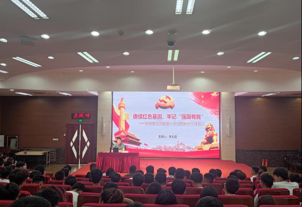 新生见面会后,党总支书记朱礼恒为2021级全体新生上“赓续红色基因,牢记‘强国有我’”入学第一课。志于道,据于德,依于仁,游于艺。朱礼恒从“何为人才”为切入点,从道、德、仁、艺四个方面,阐述了人才的标准。他说到,大学如何度过,将对每一个同学的漫漫人生产生至关重要的影响。在大学的宝贵时光中,希望2021级全体新生能够做到以下几点。一要立奋斗之志,做一个胸怀理想、激昂青春的人,接好新时代的“接力棒”,走好“脚下路”,饱含爱国之情,做一个心有大我、至诚报国的人;二要以德润身,修己安人,从明大德、守公德、严私德三个层次提升道德修为、涵养新风正气,争当自觉践行社会主义核心价值观的体院人;三要守正创新,常怀勤学之心,珍惜大学时光,脚踏实地打好基础,注重培养创新思考能力、终身学习能力、团队协作能力、友好交流能力,做一个只争朝夕、不负韶华的人;四要身心健康,做体魄强健、身心和谐、为祖国健康工作五十年的体院人,要热爱运动,打好身体的底子,热爱艺术,发现生活之美,养成良好心态,以健康的心理去迎接未来人生中的挑战,争做堪当民族复兴大任的时代新人。
