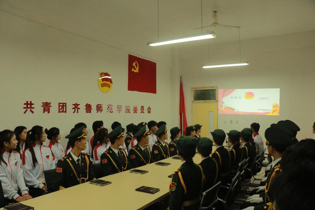 4月22日下午,齐鲁师范学院国旗护卫队临时团支部在二教A306会议室开展党史学习教育,团委相关老师、组织指导教师、校学生会代表和全体队员参加学习。