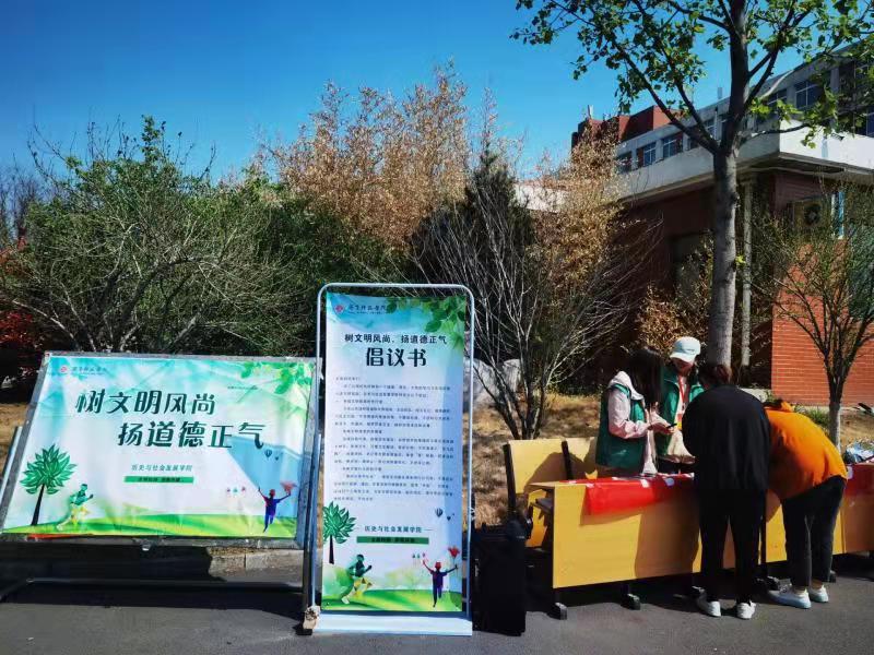 为全面践行社会主义核心价值观,扎实推进文明校园建设,建设一个健康、清洁、文明的学习与生活环境,引导广大师生培养文明行为和习惯。历史与社会发展学院于4月13日在学校开展了以“树文明风尚,扬道德正气”为主题的文明校园建设倡议活动。