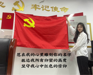 奋斗正青春,青春献给党。通过组织“我与党旗、党徽合个影”主题活动,向伟大光荣正确的中国共产党致敬,送上最真挚的祝福,表达同学们对党的忠诚与无限热爱之情。