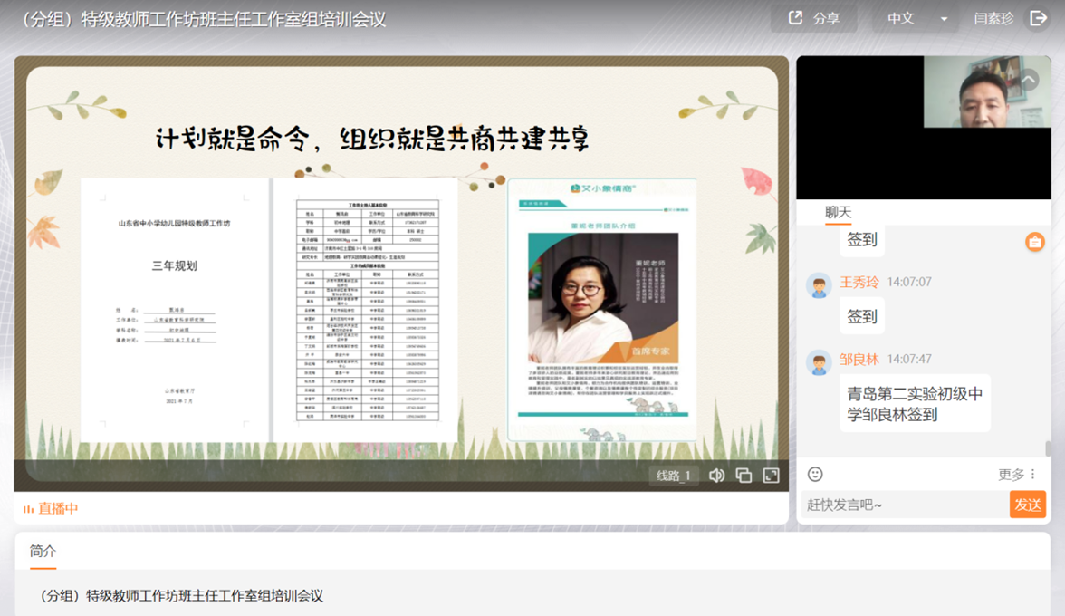 山东省中小学师训干训中心副主任黄雯、师训部主任王凯和张陆陆分别主持了集中会议和分组培训。