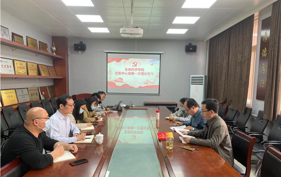 2023年3月8日上午,生命科学学院党委中心组在学院会议室召开2023年度第一次理论学习会。中心组全体成员参加会议,学习活动由学院党委书记张海龙主持。