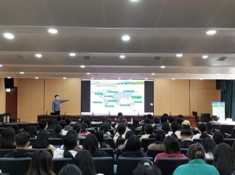 活动伊始,杨睿介绍了与会嘉宾与会议流程。随后,崔国威通过企业宣传片和PPT,向毕业生们详细介绍了公司的基本概况、发展前景、招聘岗位、晋升空间等内容,展示了润丰股份雄厚的企业实力、完备的培训体系、丰厚的福利待遇、人性化的工作环境等。