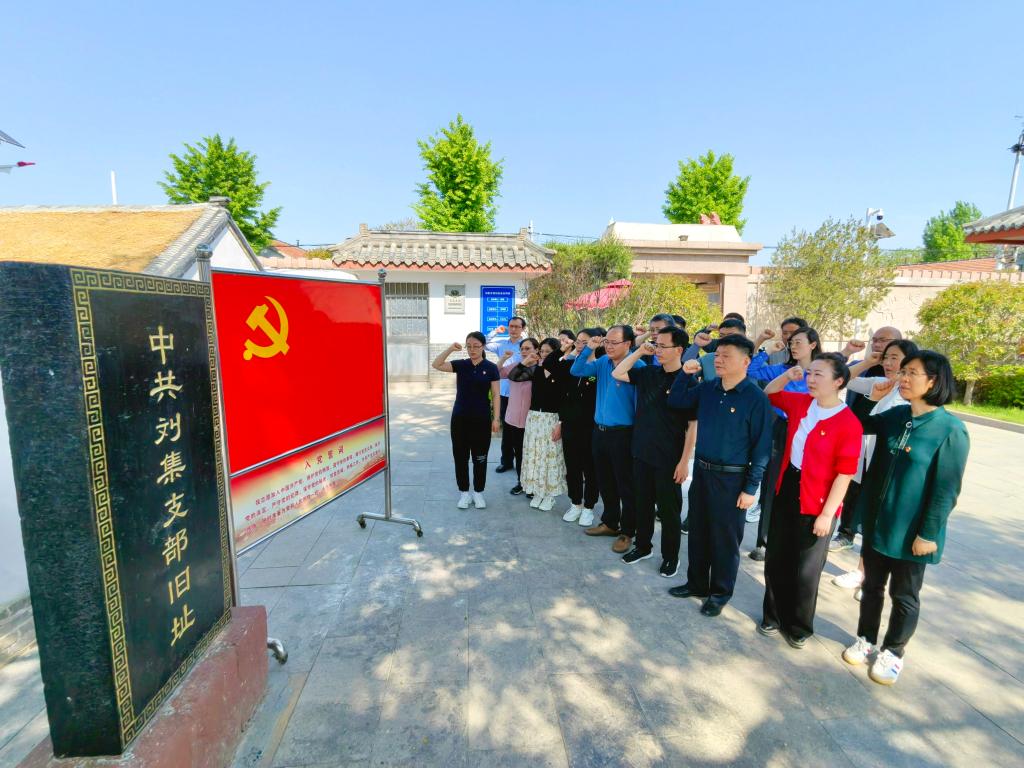 殷殷之情皆系华夏,寸寸丹心尽为家国。5月12日,全体党员、干部走进东营刘集红色教育基地,参观了刘集党支部旧址。刘集党支部1925年春建立,是山东省乃至全国最早的一批农村党支部,使用和保存了我国首版中文全译本、国家一级革命文物——《共产党宣言》。在讲解员的讲述中,党员们走入那段峥嵘岁月,亲身感受当年艰苦卓绝的斗争环境及革命先烈不屈不挠的奋斗精神。在刘集党支部旧址前,全体党员、干部面对党旗,重温入党誓词,以铿锵誓言筑牢初心使命,强化担当作为。