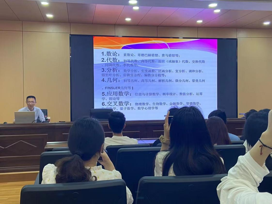 报告会上,曹廷彬教授对数学的概念和分支、复数的诞生和复分析方向的发展历程以及国内外数学类奖项和有代表的数学家作了详细介绍,就有关问题与师生进行充分交流讨论,并鼓励同学们要构建数学思维,重点提升提出问题、分析问题和解决问题的能力,不断培养自学能力。