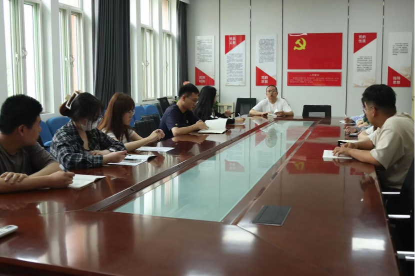 为深入开展学习贯彻习近平新时代中国特色社会主义思想主题教育,进一步落实毕业生党员教育管理工作,强化党员意识与身份,坚定文化自信、牢记初心使命,扣好迈向社会的“第一粒扣子”,5月18日,物理与电子工程学院在二号实验楼B216会议室开展“坚定文化自信 奋进时代征程”主题交流会,会议由2019级辅导员吕伟皓主持,学院毕业生党员代表参会。