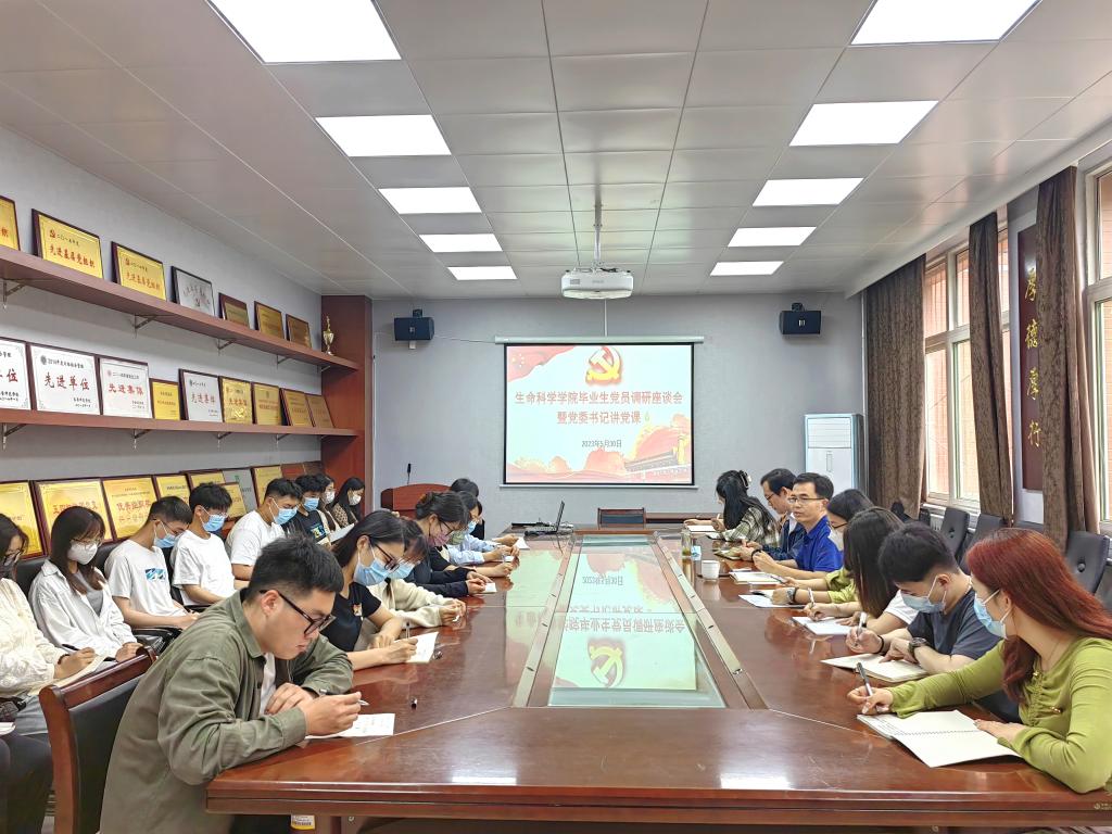 为深入开展学习贯彻习近平新时代中国特色社会主义思想主题教育,根据主题教育工作安排,5月30日上午,生命科学学院在学院会议室召开毕业生党员调研座谈会暨党委书记讲党课活动。学院党委书记张海龙、副书记朱广伟、学生第二党支部书记徐茜茜和全体毕业生党员参加座谈会,座谈会由朱广伟主持。