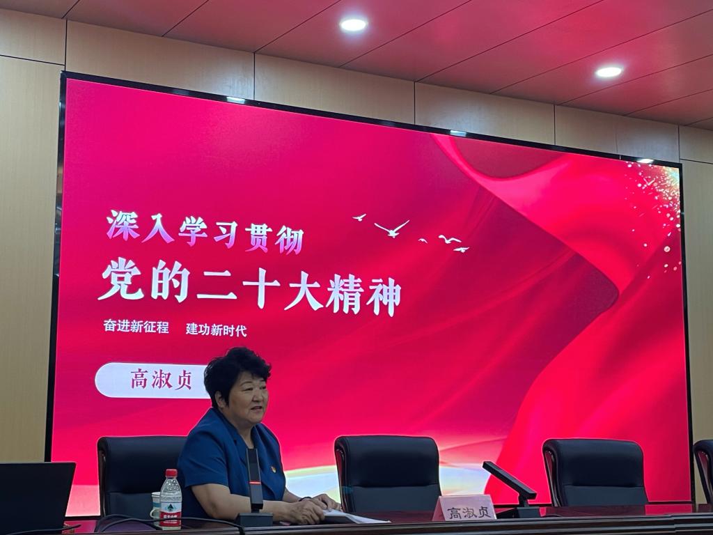 为深入学习贯彻习近平新时代中国特色社会主义思想,推进主题教育走深走实,扎实推进学校思想政治理论课改革创新,6月3日下午,学校邀请党的二十大代表、章丘区双山街道三涧溪村党委书记高淑贞为师生作题为《深入学习贯彻党的二十大精神奋进新征程,建功新时代》的报告。报告会由马克思主义学院副院长刘金玲教授主持。