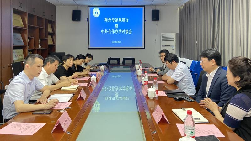 6月6日上午,济南市“海外专家泉城行”代表团到学校参观考察,双方举行中外合作办学对接会,就进一步提升国际交流合作水平,推进优质教育资源有效衔接展开交流座谈。韩国研究所企业协会副会长、韩南生物代表理事(CEO)宋祥善、德威咨询代表理事(CEO)韩锡荣、W-RICH代表理事Alicia崔,济南高层次人才发展促进会副会长彭立增、运营策划中心主任彭迪,学校国际交流与合作处处长何艳、合作发展办公室主任刘勇、化学与化工学院院长曹晓荣等参加会议。会议由彭立增主持。