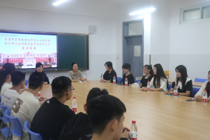 课后,师范生与中学信息课授课老师进行了深入座谈研讨。通过交流与提问,两位老师分享了自己的教育理念、教学设计,以及在实践当中摸索总结出的教学方法。同学们纷纷表示受益匪浅,不仅深入了解到中小学教育一线的情况,而且提升了自己的从教意愿,今后将努力学习,不断锻炼教育教学技能,为将来投身基层教育事业打基础。