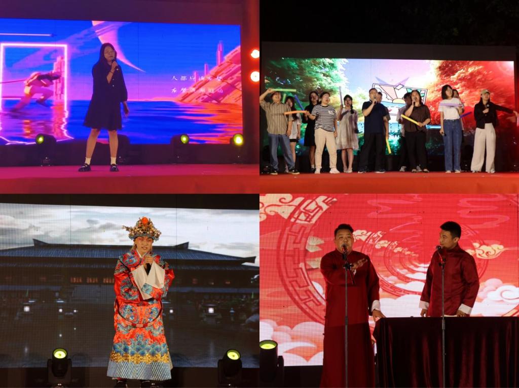 晚上7点,随着四位主持人青春洋溢、活力满满的开场介绍,精彩绝伦、形式多样的毕业晚会拉开帷幕。开场即高潮,丝滑的轮滑表演瞬间点燃全场氛围。而后,一首青春的歌,将毕业生带回初识的九月,沉重的行李按耐不住期待的心,初次见面时的自我介绍恍若发生在昨日。一串串婉转动听的音符,一句句情意深切的歌词,承载着所有人对毕业生最真挚的祝福与期待。《罗密欧与朱丽叶》的话剧表演高潮迭起,台下的观众感慨万千。2022级油画班同学字正腔圆,唱一曲动人心弦,声情并茂,演一出梨园好戏让京剧文化浸润心田。相声表演以诙谐幽默的方式将中华优秀传统文化融入其中,让师生们在开怀大笑中体悟文化魅力。在全场合唱《稻香》中,晚会落下了帷幕。