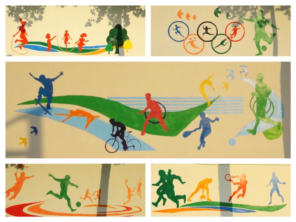 在美术学院陈明教授、团总支书记邹少爽、辅导员刘婷带领下,“传红色声音,树时代榜样”服务队来到邹平市好生初级中学,发挥专业优势,开展墙绘艺术进校园活动,助力基础教育美育发展。经过与学校领导们的多次对接,实践服务队根据学校风貌和整体氛围,紧扣乡村美育建设主题敲定样稿,并结合墙体绘制面积大小准备墙绘需要使用的工具和颜料。头顶烈日,实践队队员们从确定墙绘位置、尺幅、构图,到弯腰、抬臂、起手、落笔、上色,再到细节调整、处理边缘,始终热情高涨,战高温、斗酷暑,加班加点,充分发挥自己的艺术特长,发扬“奉献、友爱、互助、进步”的志愿服务精神,绘成一幅幅美丽的墙绘,在好生初中的操场上形成了一道亮丽的风景线。